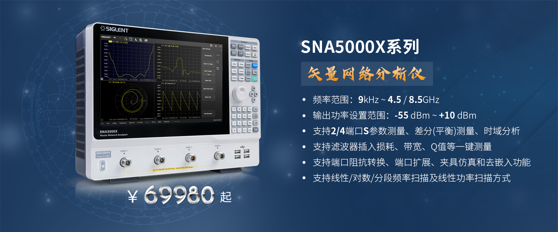 SNA5000X系列矢量網(wǎng)絡(luò)分析儀(Vector Network Analyzer),其測量頻率高達(dá)8.5GHz,支持4端口S參數(shù)測量,差分(平衡)測量,時域測...